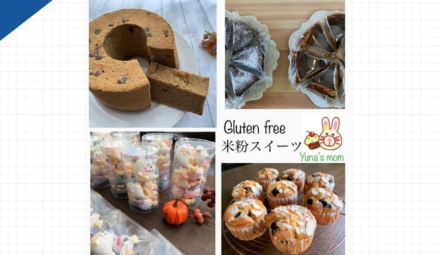 グルテンフリー米粉スイーツ・シフォンケーキ・ガトーショコラ・ベイクドチーズケーキ・マフィン・クッキー・パン等販売