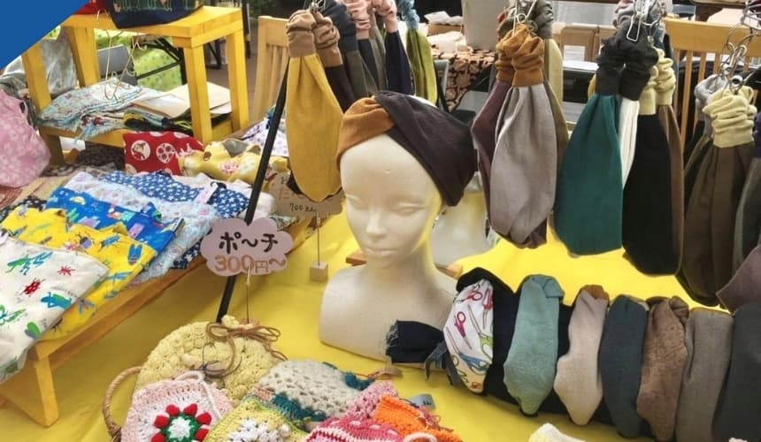 マルシェ出店時には、店主が推している“手ぬぐい”を選りすぐって出品しています。