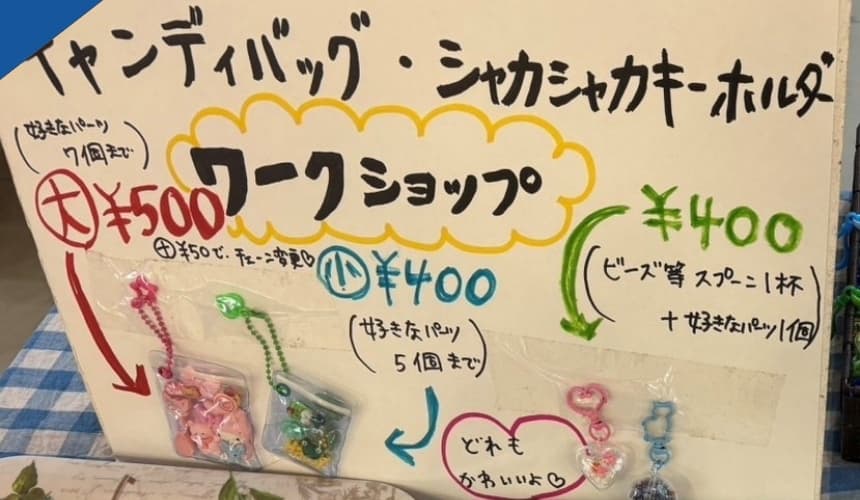 ヘアアクセサリー、アクセサリー販売・キャンディーバッグ作り・シャカシャカキーホルダー作り(400円〜550円)